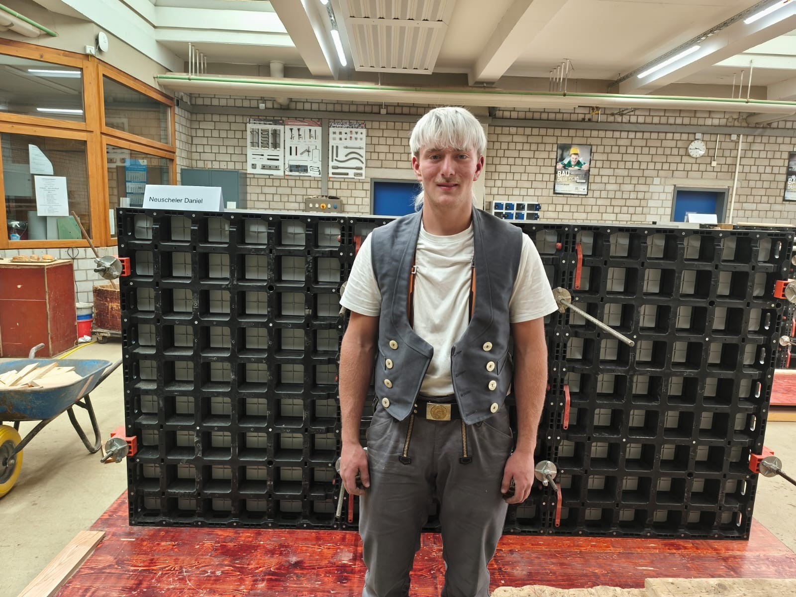 Bei den Beton- und Stahlbetonbauern war ein Betonfertigteil mit abgeschrägter Auskragung und konischen Aussparungen unter Mithilfe einer Systemschalung anzufertigen. Bewertet wurde neben Maßgenauigkeit und handwerklicher Ausführung auch die genaue Umsetzung der Einzelvorgaben. Wolfgang Lutz, Vorsitzender der Prüfungskommission, zeigte sich am Ende sehr zufrieden mit den Ergebnissen des Wettbewerbs und dem handwerklichen Können der jungen Baufachleute.